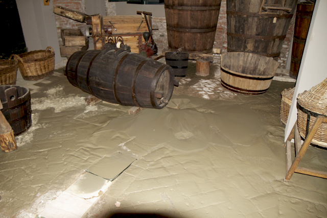 All’interno del museo la pressione ha prodotto eruzioni di sabbia attraverso i giunti delle grandi lastre in cemento del pavimento, che si sono sollevate e crepate.