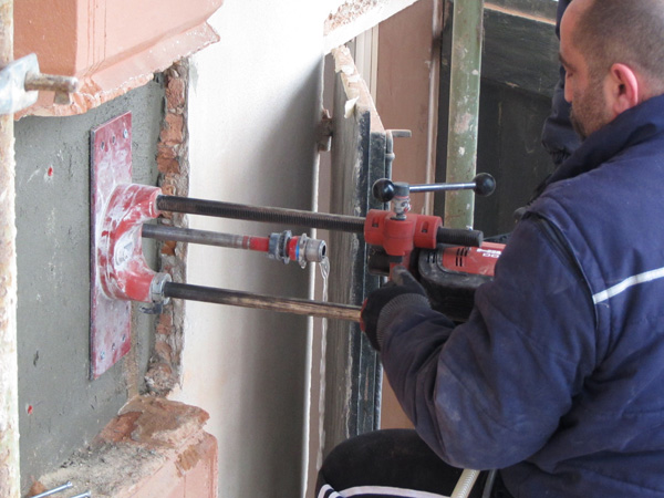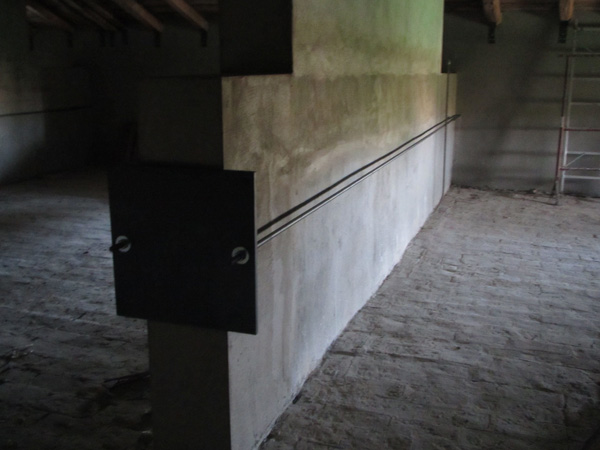 Per sopperire alla mancanza di elementi trasversali di ammorsamento tra pareti perimetrali e cortine trasversali si è ricorsi all’installazione di catene con piastre interne ed esterne.