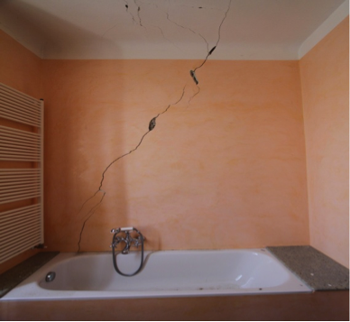 Foto 3 – La frattura sulla facciata prodotta dalla inclinazione della torre verso l’interno dell’edificio