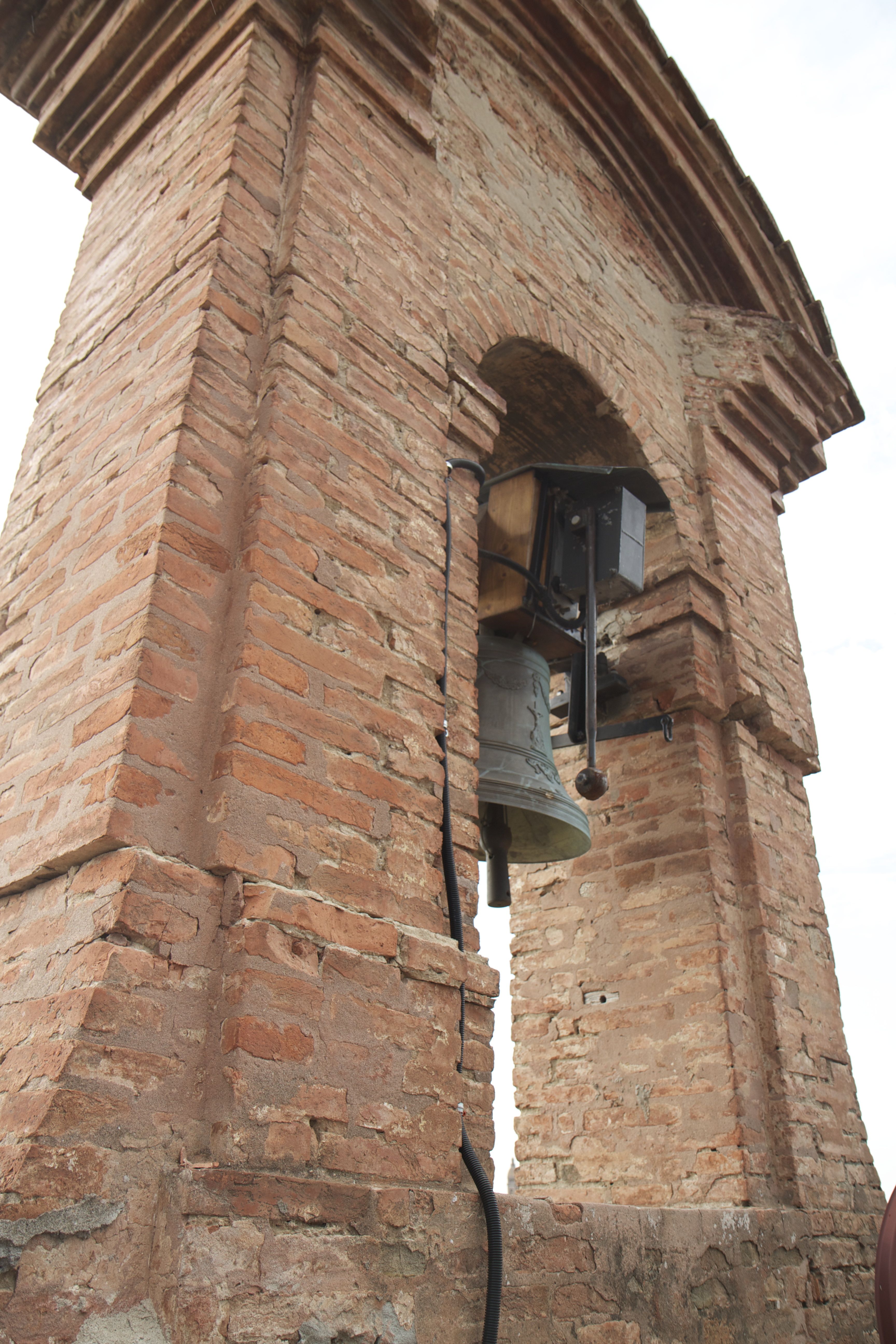 Una nuova scossa avrebbe potuto facilmente innescare questo disastroso evento. Per evitarlo, sin dai primi giorni dopo il sisma, è stato prontamente allestito un ponteggio metallico a tubi e giunti (foto 5) che agganciava i due pilastri della cella campanaria e ne annullava la propensione a inclinare verso l’interno, grazie alla sua base allargata e ai contrappesi posti su di questa.