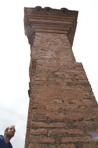 Foto 2 – La torsione della torre vista dalla parte opposta alla facciata: il pilastro sinistro è a destra nella fotografia.
