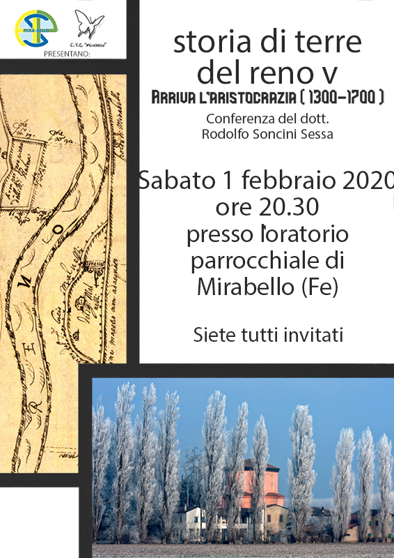 La quinta conferenza sulla Storia di Terre del Reno, organizzata dal Centro di Promozione Sociale di Mira-bello e dal G.T.C. di Mirabello, si è tenuta 1 febbraio 2020 presso l’Oratorio parrocchiale di Mirabello.
