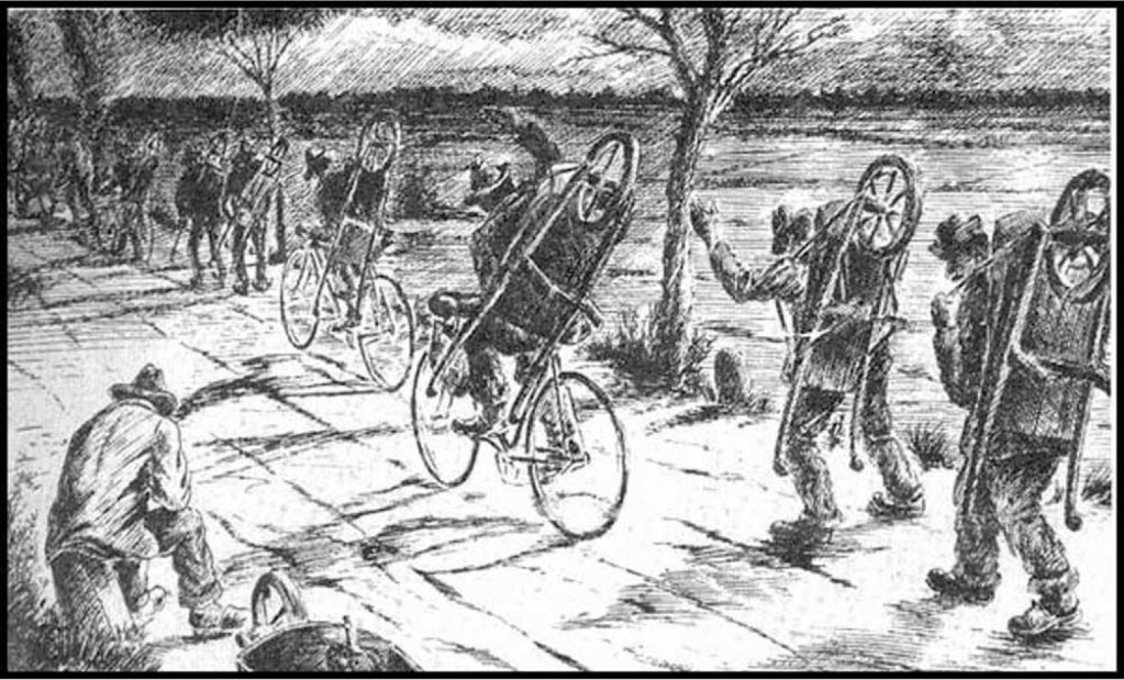 Lo scariolante era tenuto a portare la sua vanga e la sua cariola. Doveva portarla con se, trainandola dietro la bicicletta o tenendola sopra la testa. Veniva pagato alla fine della giornata ma solo se l’aveva conclusa. Per questo si portava dietro, sempre!, la ruota di scorta … della carriola.