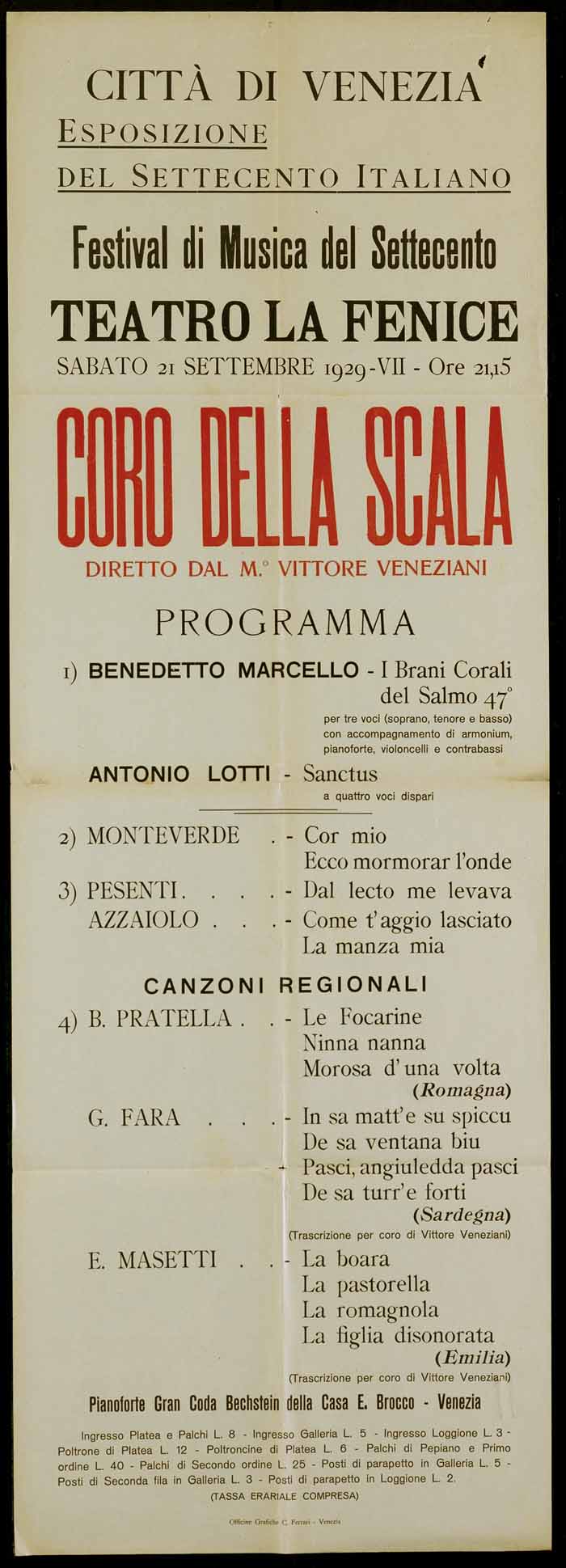 E’ difficile oggi farsi un’idea del successo che all’epoca questi canti riscossero. Può aiutare sapere che il Coro della Scala le inserì, assieme a pezzi di Benedetto Marcello e Monteverdi nel programma di un concerto che nel 1929 tenne in varie città d’Italia.