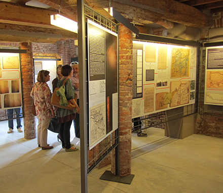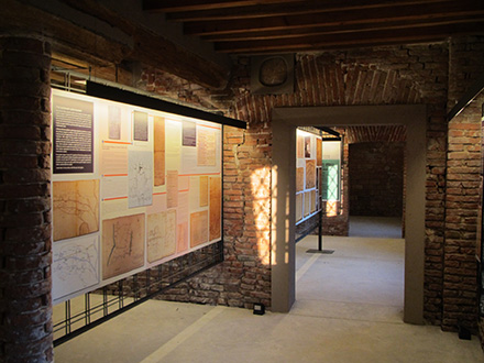 In dieci grandi pannelli, con l’ausilio di mappe e documenti, la sezione riscostruisce questa lunga vicenda, fornendo al contempo un quadro delle strade, delle vie di navigazione, delle torri e dei cippi che furono posti dagli Stati per affermare la loro sovranità sul territorio e per poter riconoscere i rispettivi confini dopo le frequenti esondazioni.