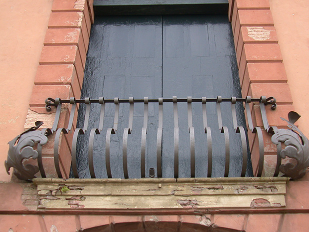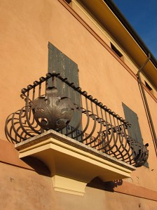 c) la ringhiera in ferro battuto di detto balcone (foto 4) è identica a quella del balconcino rococò (foto 6) sulla facciata sud-ovest.