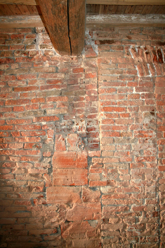 E i relitti sono stati ritrovati! Nel 2010, nella costruzione del Museo sono stati rimossi gli intonaci che ricoprivano le pareti dell’androne al piano terra e sono allora apparsi i segni della rimozione delle spalle delle porte (Fig. 9) e gli antichi pilastri, disposti a intervalli regolari nelle pareti (Fig. 10). Nel Museo sono stati posti pannelIi spiegano al visitatore il significato di tali relitti.