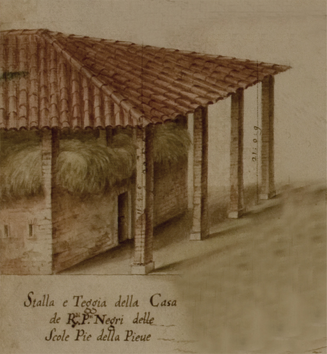 I muri esterni al piano terreno della casina erano costruiti con continuità e i pilastri si innalzavano da essi: non esistono infatti pilastri nelle murature esterne del piano terreno (Fig. 16).