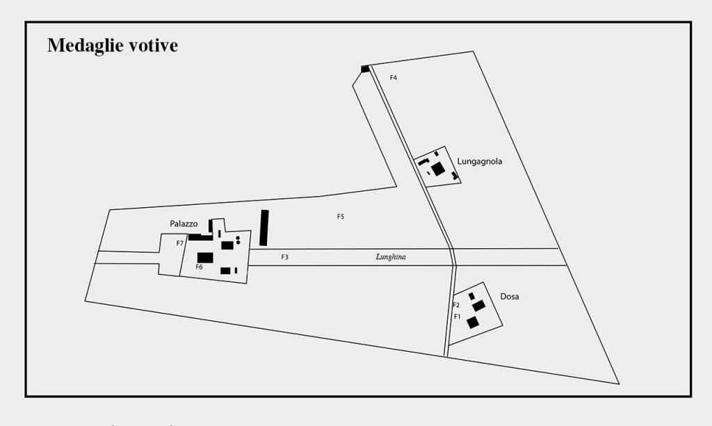 Fig. 1 – Mappa dei ritrovamenti delle medaglie votive (Fx)