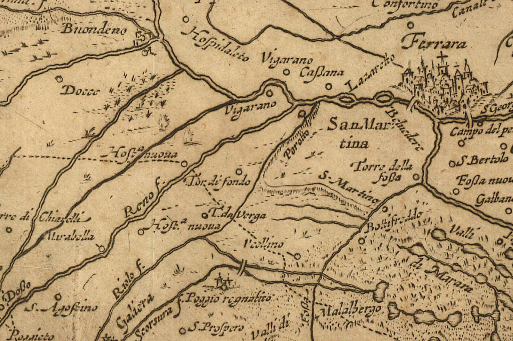 Mappa 4.1 – 1599 – Corografia del Ducato di Ferrara di G. Magini (particolare) [Arch. Palazzo]