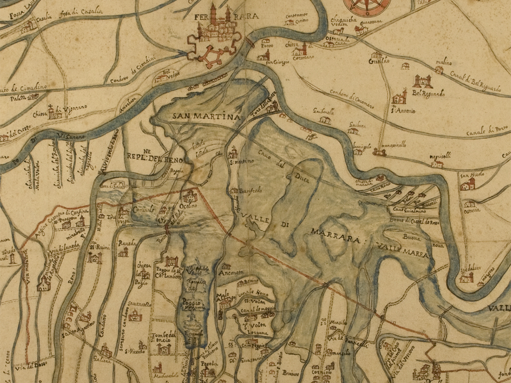 Il Canale Naviglio, che da Bologna, attraverso il porto di Malalbergo, si riallacciava a Ferrara (mappa 7.2), e il percorso che da Mirabello attraverso le valli portava all’Adriatico (mappa 7.8), furono sempre oggetto di cure e il loro controllo e il diritto di esazione delle tariffe di transito furono contesi e causa di liti, di accordi, di rivalità e di compromessi.