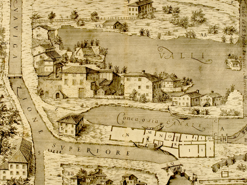 Naturalmente la cartografia trattò a lungo e minuziosamente la descrizione di tutta la rete di navigazione e di scolo. Nel Pannello 7 mostriamo alcuni disegni e mappe che riportano indicazioni varie e interessanti per rendere un’idea dell’impegno profuso per la più vantaggiosa soluzione del problema della navigazione.