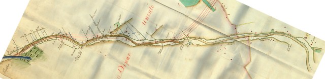 Presentiamo alcune mappe e profili, tra i molti disponibili, che mostrano quanto ai quei tempi fosse grande l’interesse per la sistemazione del Reno. La mappa napoleonica (carta 6) che mostra l’alveo ormai abbandonato del fiume tra Sant’Agostino e Mirabello, ci aiuta a individuare con precisione i luoghi delle tre grandi rotte che cambiarono la storia del nostro territorio: Bisacca, Annegati e Panfilia. Non dimentichiamo che il territorio come oggi lo vediamo e le tranquille condizioni di vita che esso ci consente, non sono dati da sempre, ma sono il frutto del plurisecolare lavoro di uomini e donne, che con intelligenza e tenacia, seppur con errori e lentezze, contrasti e ripensamenti, hanno trasformato radicalmente l’aspetto e le condizioni di questa terra.