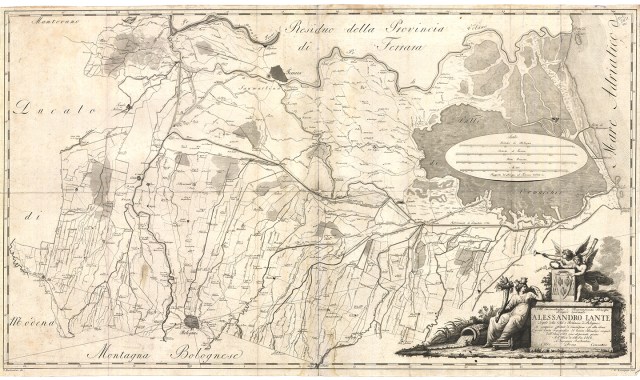 Anche la carta 3 è basata su un disegno del Saccenti: illustra la revisione di alcune precedenti proposte per il riassetto idraulico del territorio, presentate nel 1658 dal Cassini in un convegno a Ravenna.