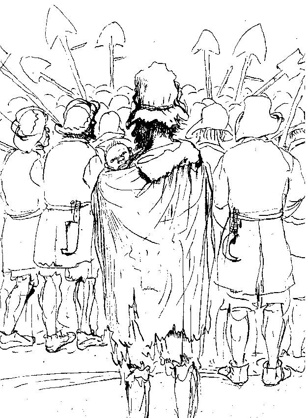 A quei tempi la vita era dura, molto dura, come documenta il disegno, riprodotto al centro del pannello, che è oggi conservato nel castello di Windsor, in Inghilterra, ed è proprietà personale della Regina Elisabetta. E’ dovuto alla penna del Guercino, un grande pittore secentesco, nato a Cento, che quindi ben conosceva la nostra zona.  Sembra anticipare, se pur di spalle il Terzo stato di Pelizza da Volpedo. Notate la tenerezza del padre che stringe al petto il suo bambino … un po’ porcellino.