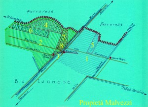 il loro ultimo possedimento sulla via Giovecca, come abbiamo visto nella carta 6 del Pannello 11. Il casino Malvezzi, la residenza signorile che edificarono verso la metà del ‘700, riprodotto nella foto 8, sino ad anni recenti fu sede dell’Amministrazione delle Bonifiche Ferraresi.