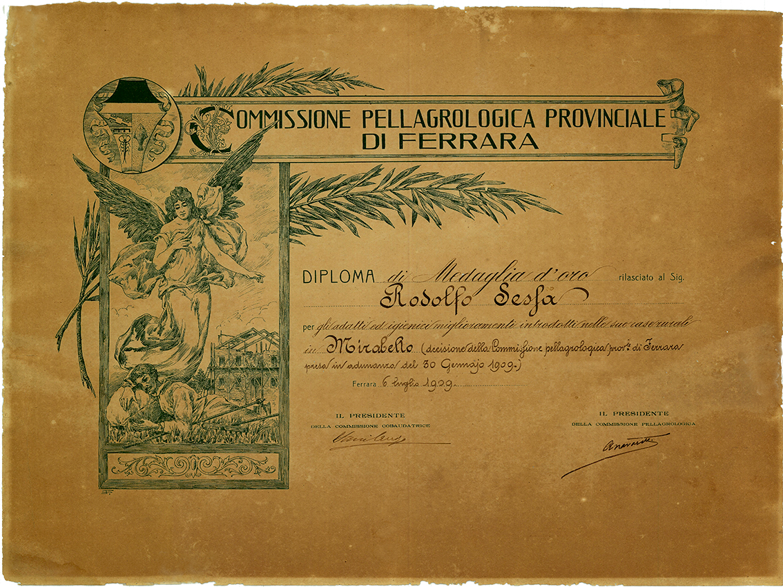 Ancor prima della sistemazione del terreno, iniziò la ricostruzione immobiliare. Per la difficoltà di procurarsi i mattoni venne creata una fornace nella stessa azienda, che i mirabellesi continuavano a chiamare Impresa come ai tempi del Cardinale. Un riconoscimento di quanto fatto dalla proprietà per il miglioramento igienico delle abitazioni si ebbe già nel 1909 col conferimento a Rodolfo della medaglia d’oro della Commissione Pellagrologica.