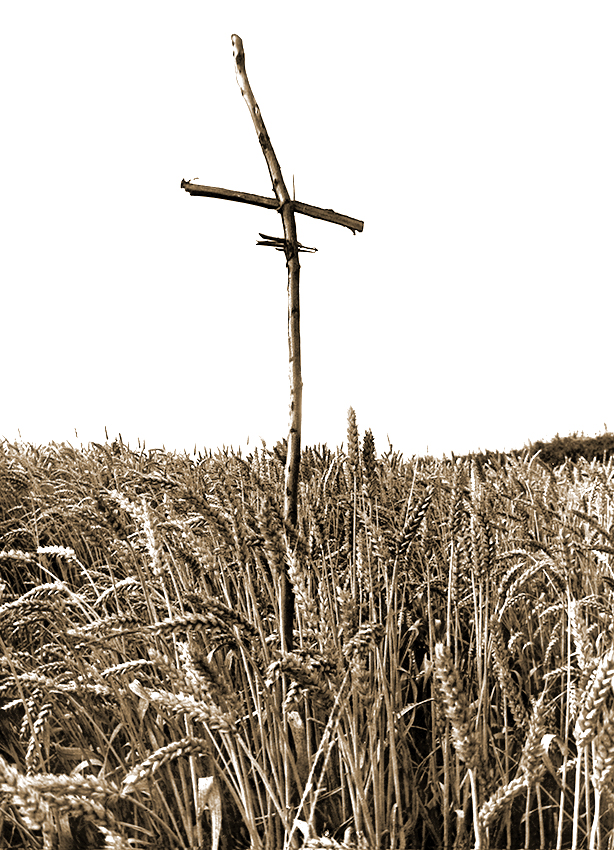 Croce con l’ulivo a protezione dei raccolti, collocata nei campi il giorno di S. Croce (3 Maggio) Mirabello, cavedagna del Palazzo Rosso (1978)